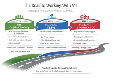 That’s why I offer three clear ways to work together — so you can get the level of support that fits where you are right now, without overcomplicating your next step.